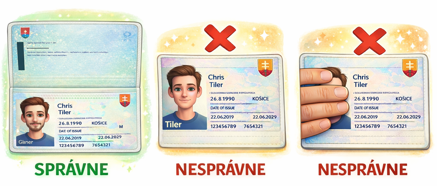 Vzorový sken pasu: dvojstránka s osobnými údajmi, pekne čitateľne, nerozmazané, neodstrihnuté, bez odleskov a bez prstov