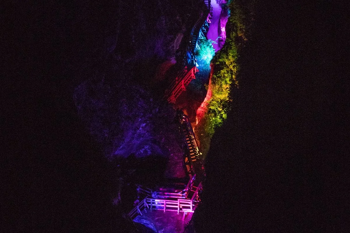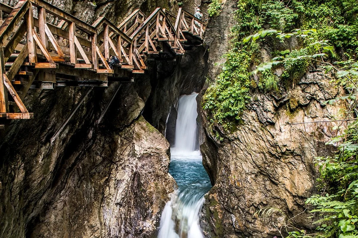 Lichtensteinklamm patrí medzi najhlbšie a najpôsobivejšie rokliny Álp. Úzka tiesňava sa kľukatí medzi vysokými skalnými stenami, ktoré pôsobia, akoby sa nad hlavami zatvárali. Po drevených mostíkoch a lávkach sa postupne ponoríte do sveta hučiacej vody, jemnej hmly a chladivého tieňa. Najväčším lákadlom je mohutný vodopád. Aj tu platí čím viac zrážok, tým majestátnejšie vodopády.