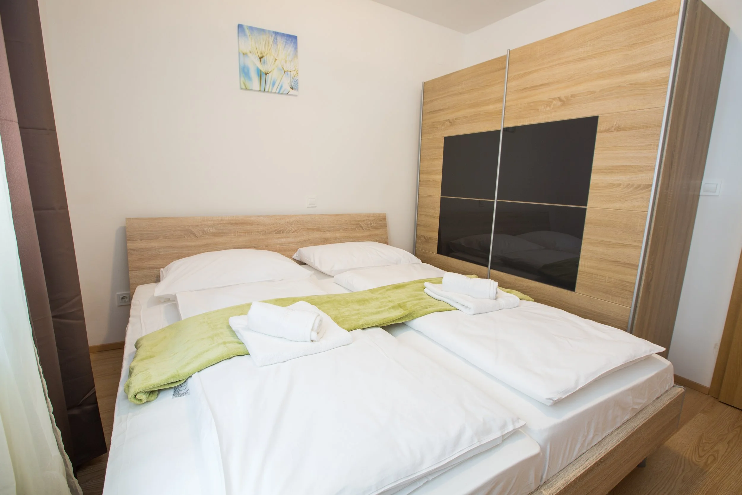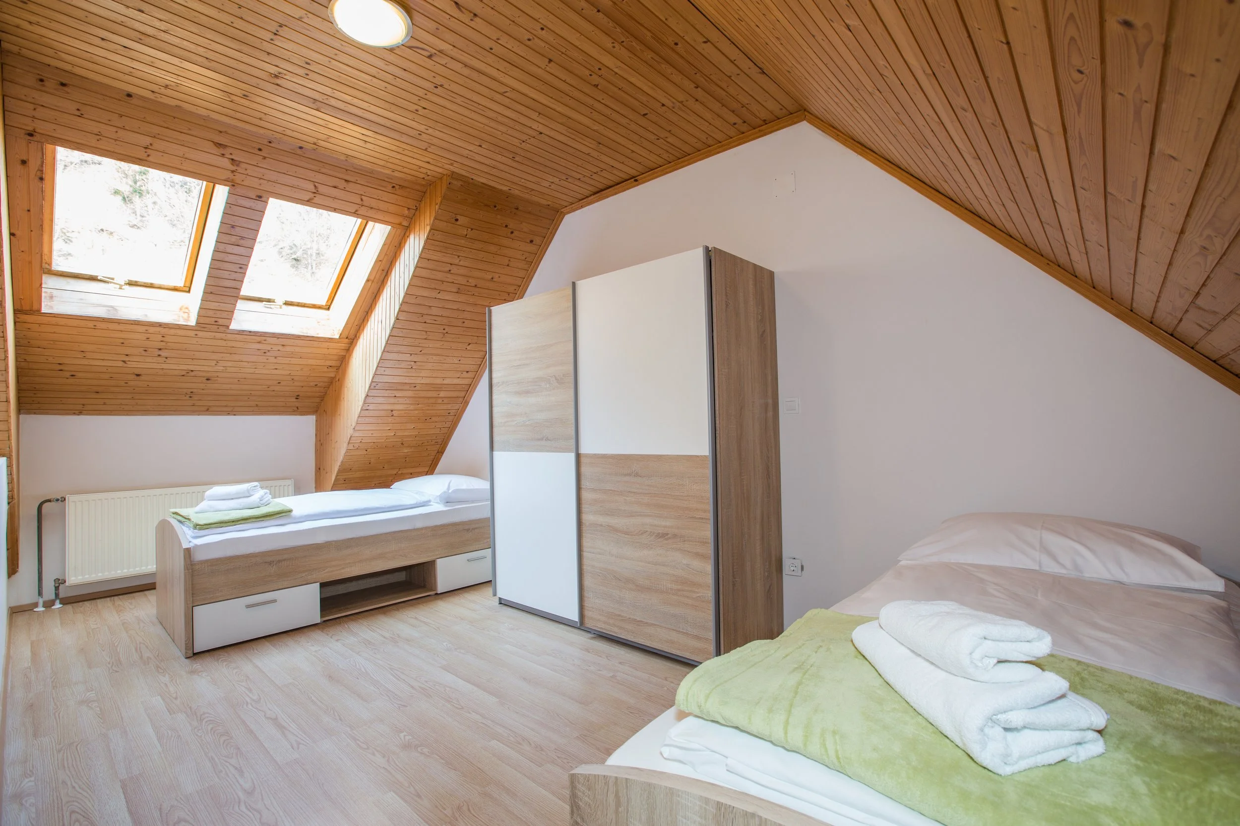 Dvakrát 3*apartmán pre 8 osoby (dvojmiestne izby) v obci Podkoren len 400m od svahu lyžiarskeho strediska Kranjska Gora (lyžiarske stredisko je rozdelené na niekoľko častií - Vitranc, Podkoren, Kokec a Mojca).